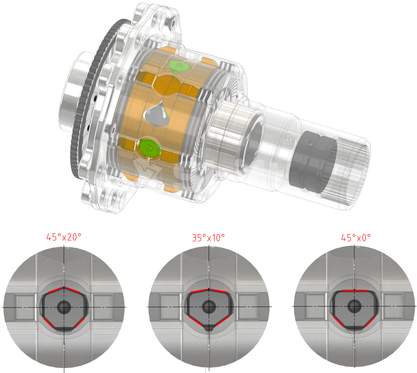 Essential influence on LSD function have ramp angles. It very depends how you measure the angle – if you measure the angle from axle axis, then the greater the angle, the stronger and more aggresive locking. There are 3 types of differential regarding ramp angles: